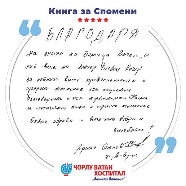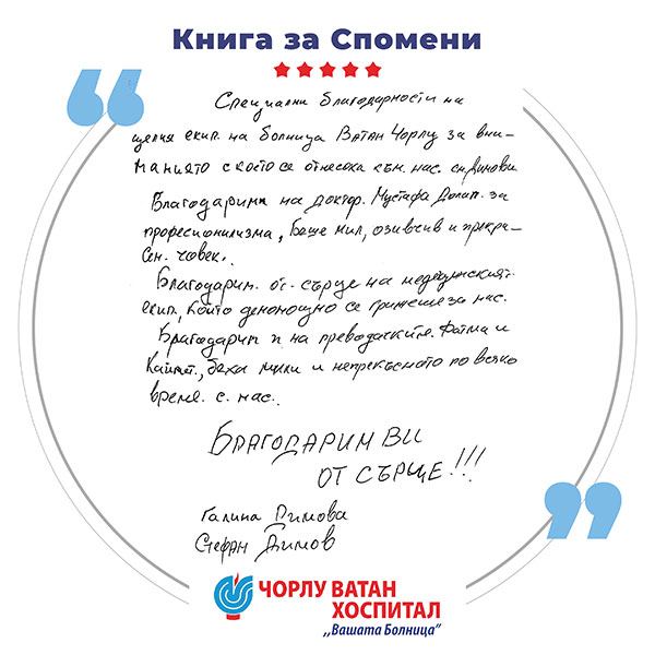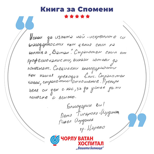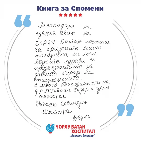At Corlu Vatan Hospital, we offer modern, high-quality medical care for patients from all over the world. Combining professionalism, modern technologies, and comfort, we create an environment of trust and safety for every patient. We work with a team of experienced specialists and state-of-the-art technological infrastructure, applying the "People First" philosophy at every stage - from accurate diagnostics and effective treatment to full recovery. Our mission is to provide quality, accessible, and equitable healthcare services, tailored to the individual needs of each patient and supported by responsible, ethical, and humane care.