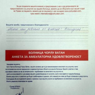 Our patient Ivanka Yakimova from Bulgaria chose Corlu Vatan Hospital for a Comprehensive Check-Up. After completing all examinations and tests within the same day, we sent our patient off with good news.