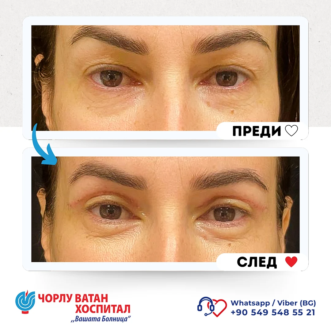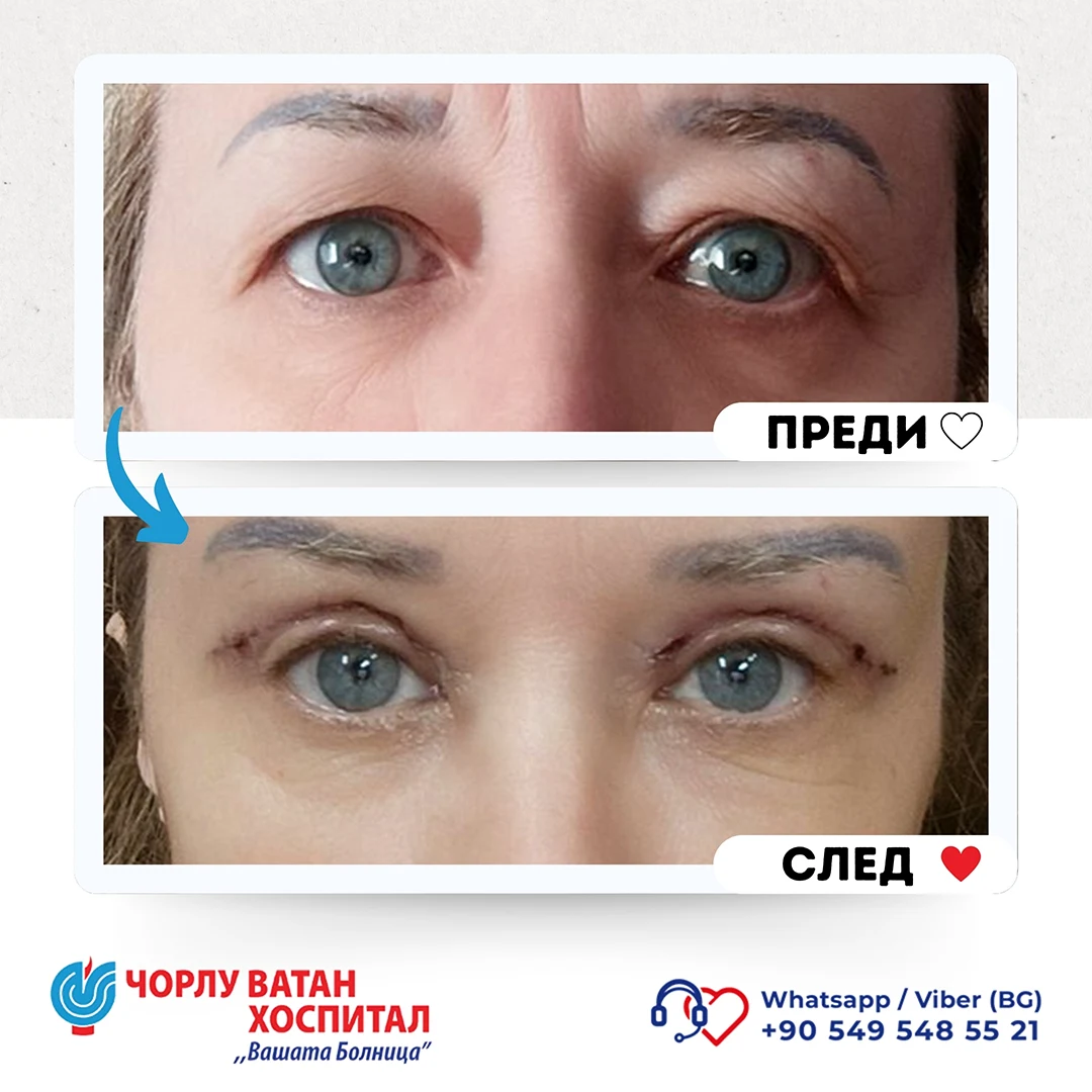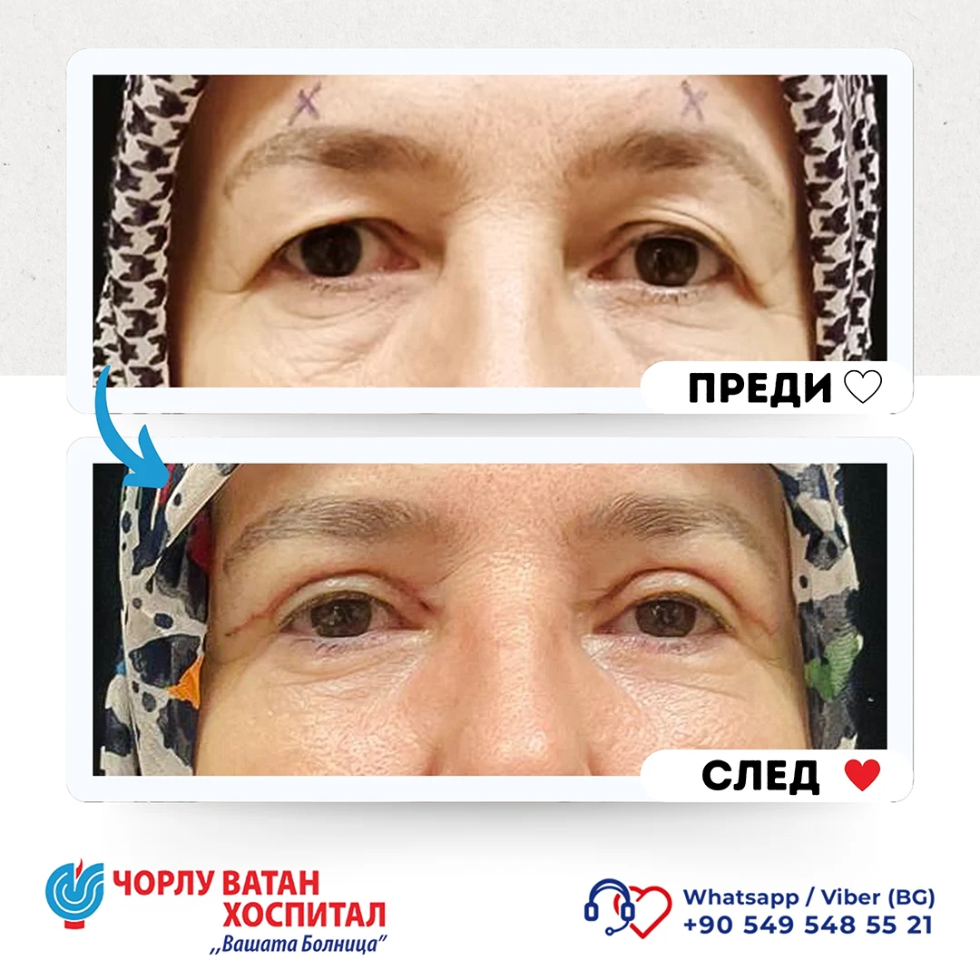 Upper eyelid blepharoplasty is a surgery performed when there is loose and excess skin and fatty deposits in the upper eyelid area, with the main cause being the aging process, and sometimes structural or pathological reasons. After a detailed physical examination and explanation, a surgical intervention plan is prepared. During the surgery, the incision line is planned to correspond to the upper eyelid crease, and during the intervention, excess muscle and fatty tissue are removed. Then, self-absorbing sutures are placed. In this surgery, scars are hidden in the eyelid crease so they are not visible. During the initial consultation with the patient, features such as drooping eyebrows and other possible problems in the periocular area are also evaluated, and options for their correction during the surgical intervention are discussed.