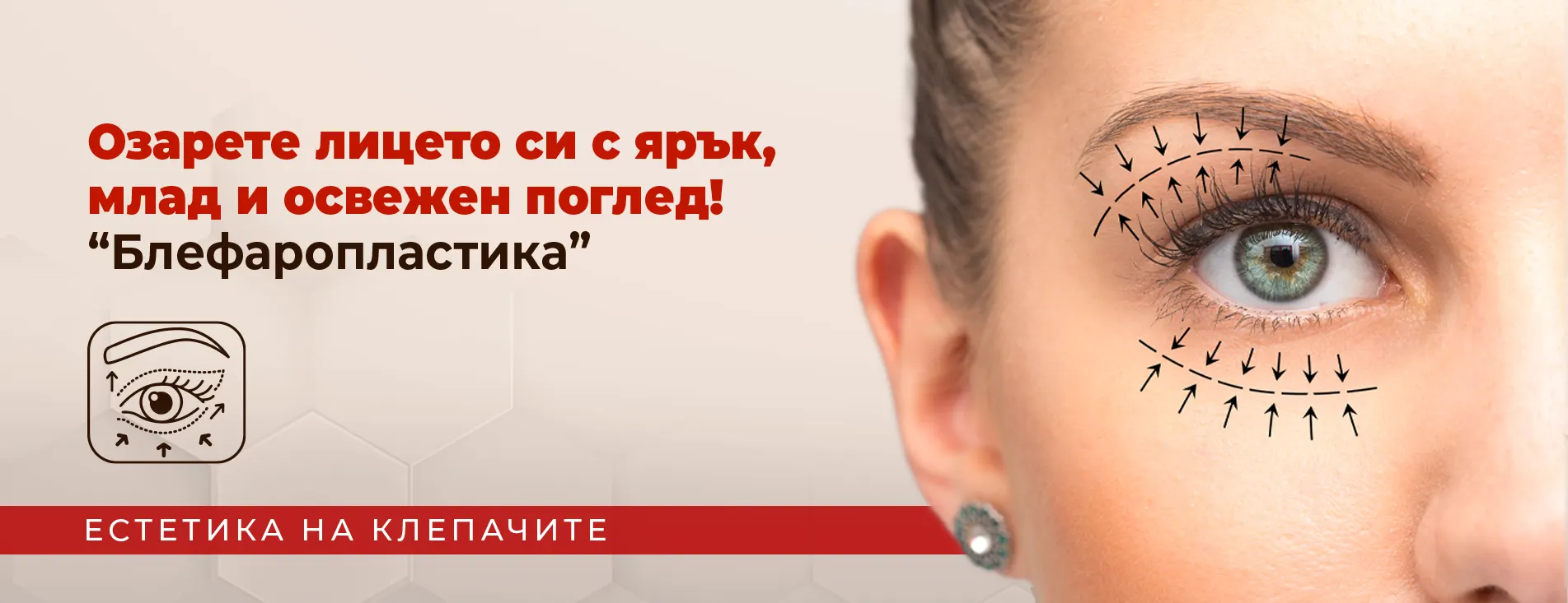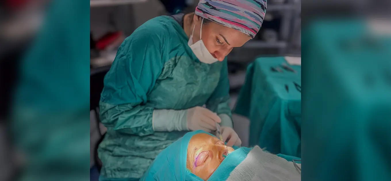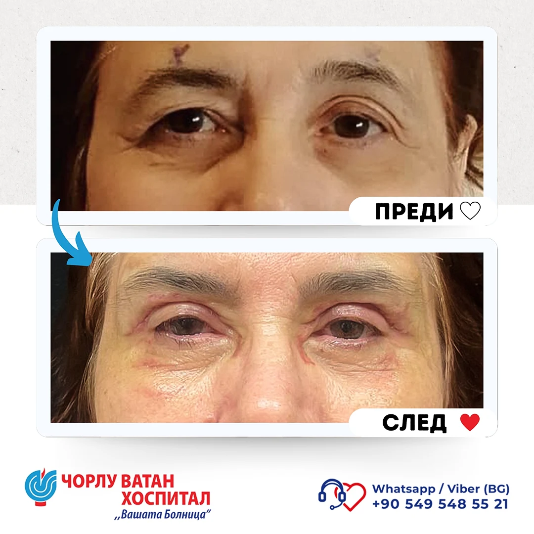 Upper eyelid blepharoplasty is a surgery performed when there is loose and excess skin and fatty deposits in the upper eyelid area, with the main cause being the aging process, and sometimes structural or pathological reasons. After a detailed physical examination and explanation, a surgical intervention plan is prepared. During the surgery, the incision line is planned to correspond to the upper eyelid crease, and during the intervention, excess muscle and fatty tissue are removed. Then, self-absorbing sutures are placed. In this surgery, scars are hidden in the eyelid crease so they are not visible. During the initial consultation with the patient, features such as drooping eyebrows and other possible problems in the periocular area are also evaluated, and options for their correction during the surgical intervention are discussed.