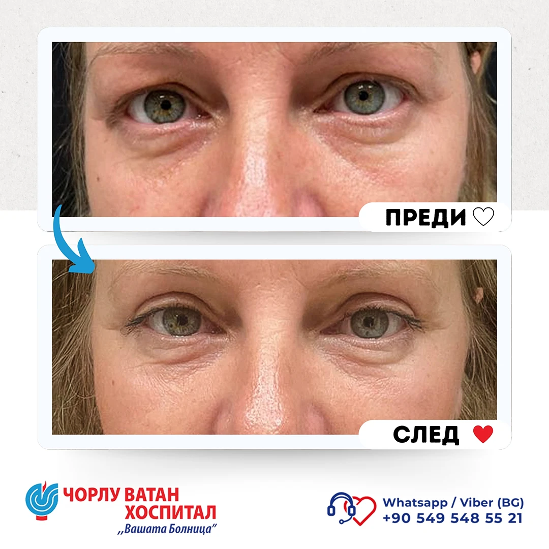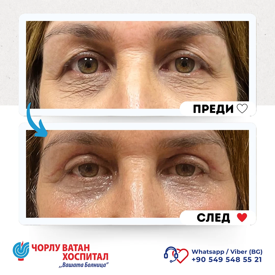 In our hospital, Botox (botulinum toxin) injection procedures are successfully performed in the forehead area and the eye area where "Crow's Feet" wrinkles are present. For patients with prominent under-eye grooves, periocular contour restoration with light filler is performed. Cheek area filling procedures are also applied to achieve lower eyelid tightening. For the treatment of dark circles and bruising in the under-eye area and to smooth wrinkles in this area, procedures such as mesotherapy are applied. For patients who have fat deposits in the under-eye area, if their case is not suitable or the patient does not wish to undergo surgical intervention, injection lipolysis procedures are successfully applied.